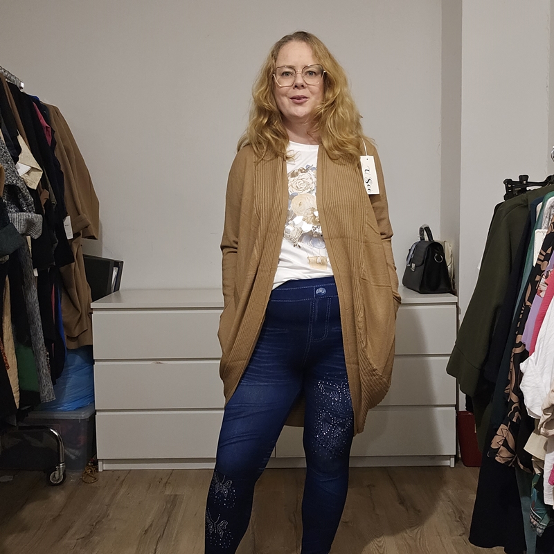 — Dolga štrikana jopa vijola