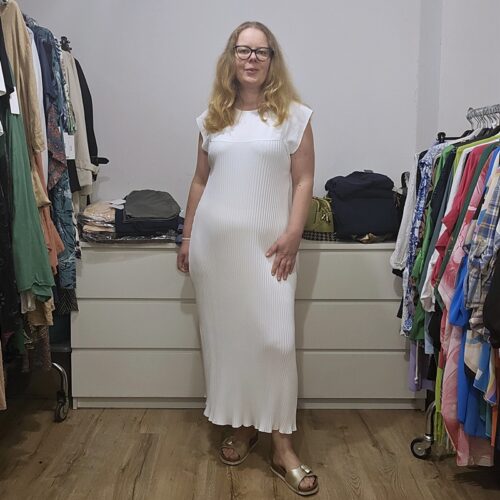 Dolga plisirana obleka bela