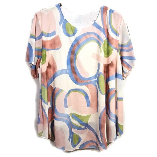 Pisana lahka tunika s kratkimi rokavi pastel roza