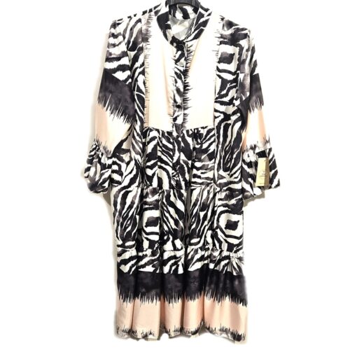 Obleka v videz svile z volančki zebra svetlo roza +črna