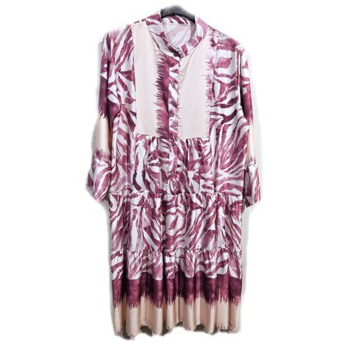 Obleka v videz svile z volančki zebra fuksija roza